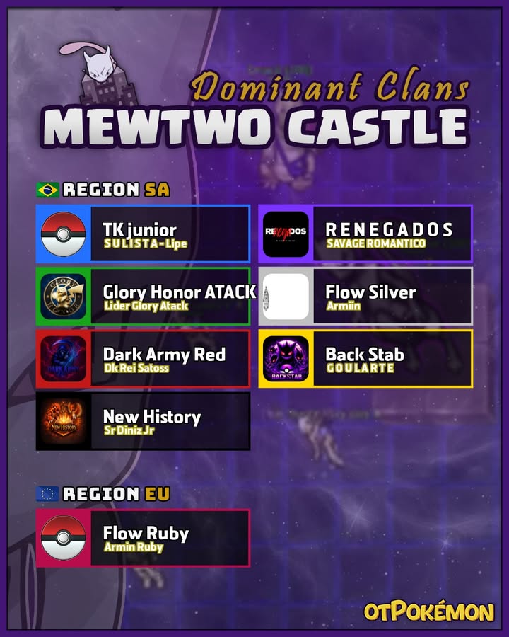 🧐Para você que não conhece, o Mewtwo Castle é um dos nossos eventos semanais, ele é exclusivo para clãs e acontece todo domingo, procure a Hypnotized Joy na Join Avenue para entender melhor o funcionamento do evento.