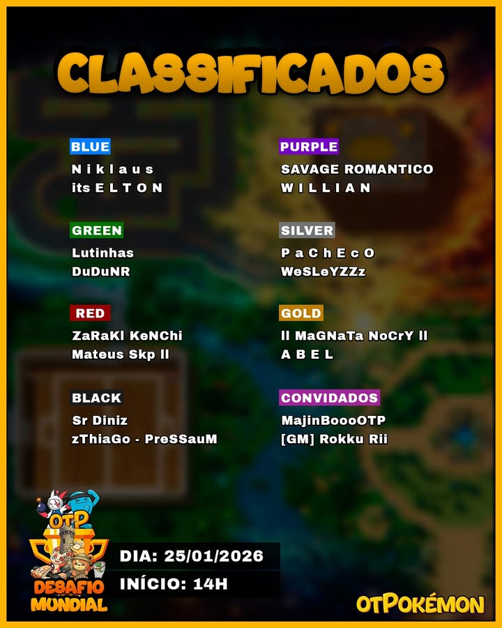 No dia 25 desse mês teremos o decimo Desafio Mundial otPokémon, a transmissão começa as 14h. O evento será transmitido no nosso canal oficial da twitch. Com o fim das votações, estão definidos os 16 participantes do Desafio Mundial 2026.